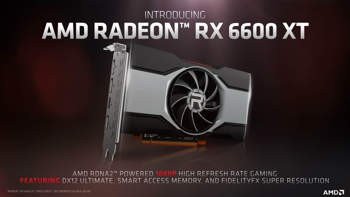 AMD affirme que la RX 6600XT est destinée aux jeux 1080p à taux de rafraîchissement élevé et qu’elle est, en moyenne, 15% plus rapide que la RTX 3060 à cette résolution.