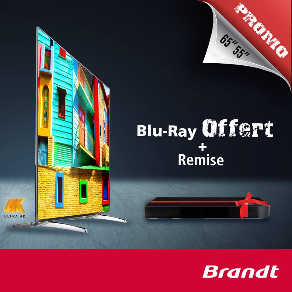 La marque algérienne, Brandt vient de lancer une offre promotionnel. pour chaque achat d’une TV Smart 4k chez Brandt de 55’’ ou 65’’, vous bénéficiez d’un lecteur BLU-RAY gratuit et d’une remise.