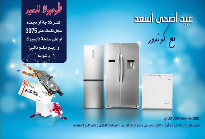 En effet, jusqu’au 26 août prochain, pour tout achat d’un réfrigérateur ou un congélateur Condor, le client pourra s’enregistrer sur la page facebook de Condor Electronics ou en appelant le numéro vert 3075 et tentera de gagner 30 000 DA et un barbecue électrique.