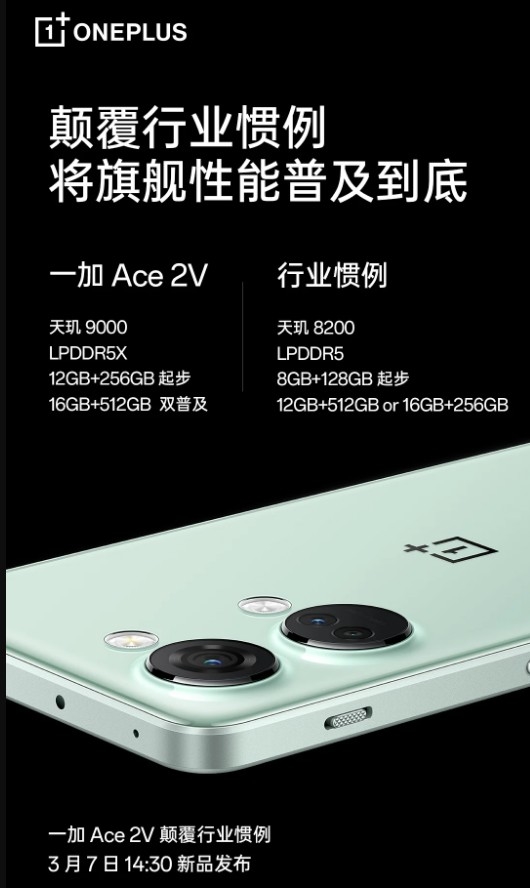 OnePlus va bientôt lancer son smartphone milieu de gamme OnePlus Ace 2V. Selon l’annonce officielle, le prochain smartphone de la série Ace sera lancé le 7 mars.