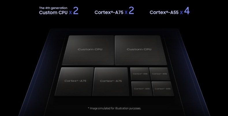 Le processeur du 9820 dispose d’une configuration à trois processeurs avec un mélange de cœurs personnalisés Samsung et de modèles ARM. Des tâches lourdes sont confiées aux deux Core M4, qui sont 20% plus rapides que les Cores M3 de l’année dernière. Ensuite, il y a deux Coeur Cortex-A75 pour des performances optimales et quatre Core A55 pour les tâches de base.