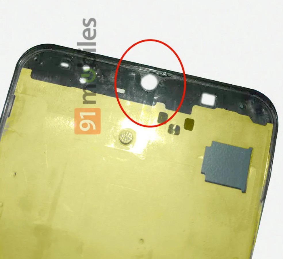 L’ouverture à l’arrière est assez grande pour une triple caméra (juste en dessous se trouve le trou pour le flash LED). L’un des modules de la caméra sera équipé d’un capteur de 24 Mpx, l’autre peut être un module ToF 3D. Le trou pour l’appareil photo selfie à l’intérieur d’une encoche en forme de goutte d’eau (il est censé contenir un autre capteur de 24MP).