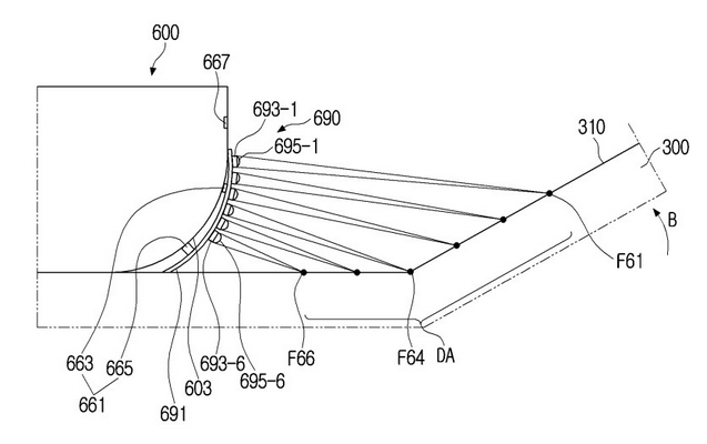 Selon Samsung, les LED transmettant les informations pourraient être plus lumineuses, en fonction de la distance focale la plus proche, ou pourraient s’incliner intelligemment dans le sens des aiguilles d’une montre ou dans le sens inverse des aiguilles d’une montre en fonction de l’angle détecté de la surface prévue. C’est comme la technologie de correction trapézoïdale que nous voyons pour présenter une image droite sur un projecteur traditionnel, mais avec plusieurs lentilles et LED.