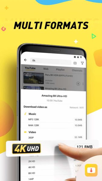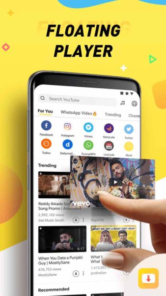 Avec Snaptube, l’utilisateur peut effectuer une recherche par mot-clé ou par catégorie de l’application. Il est aussi possible de rechercher et de télécharger des vidéos sur plusieurs plateformes Dailymotion, SoundCloud, Vimeo, Twitter et Facebook, Vevo. en plus, l’application Snaptube propose le téléchargement en audio ou vidéo selon plusieurs résolutions.